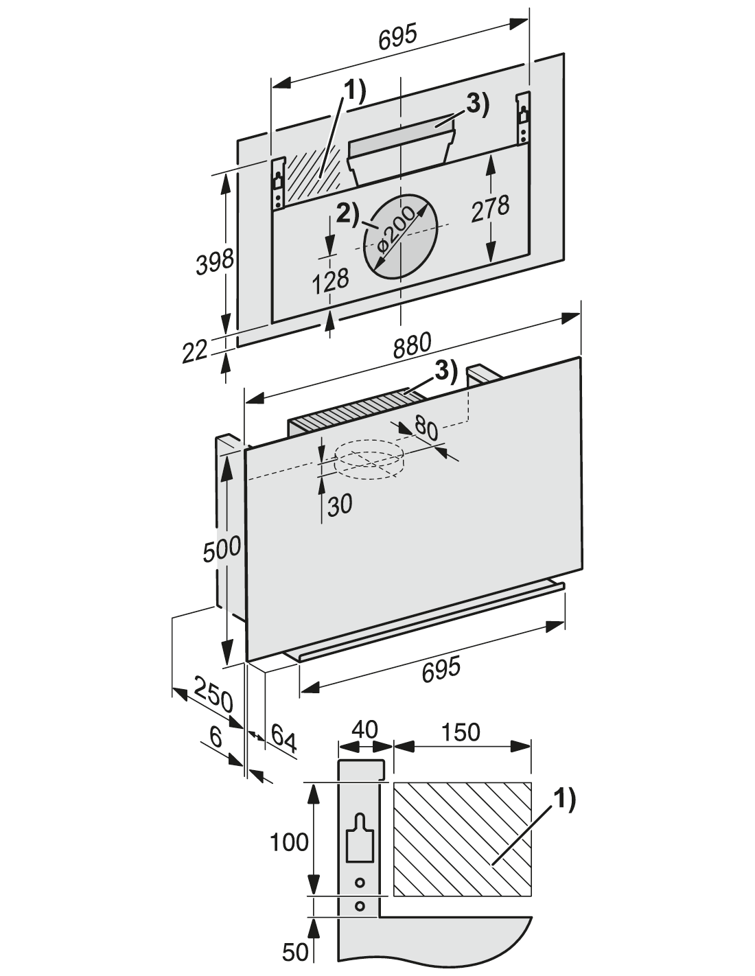 Campana extractora de pared con frontal de cristal vertical y diseño especialmente plano para más espacio.