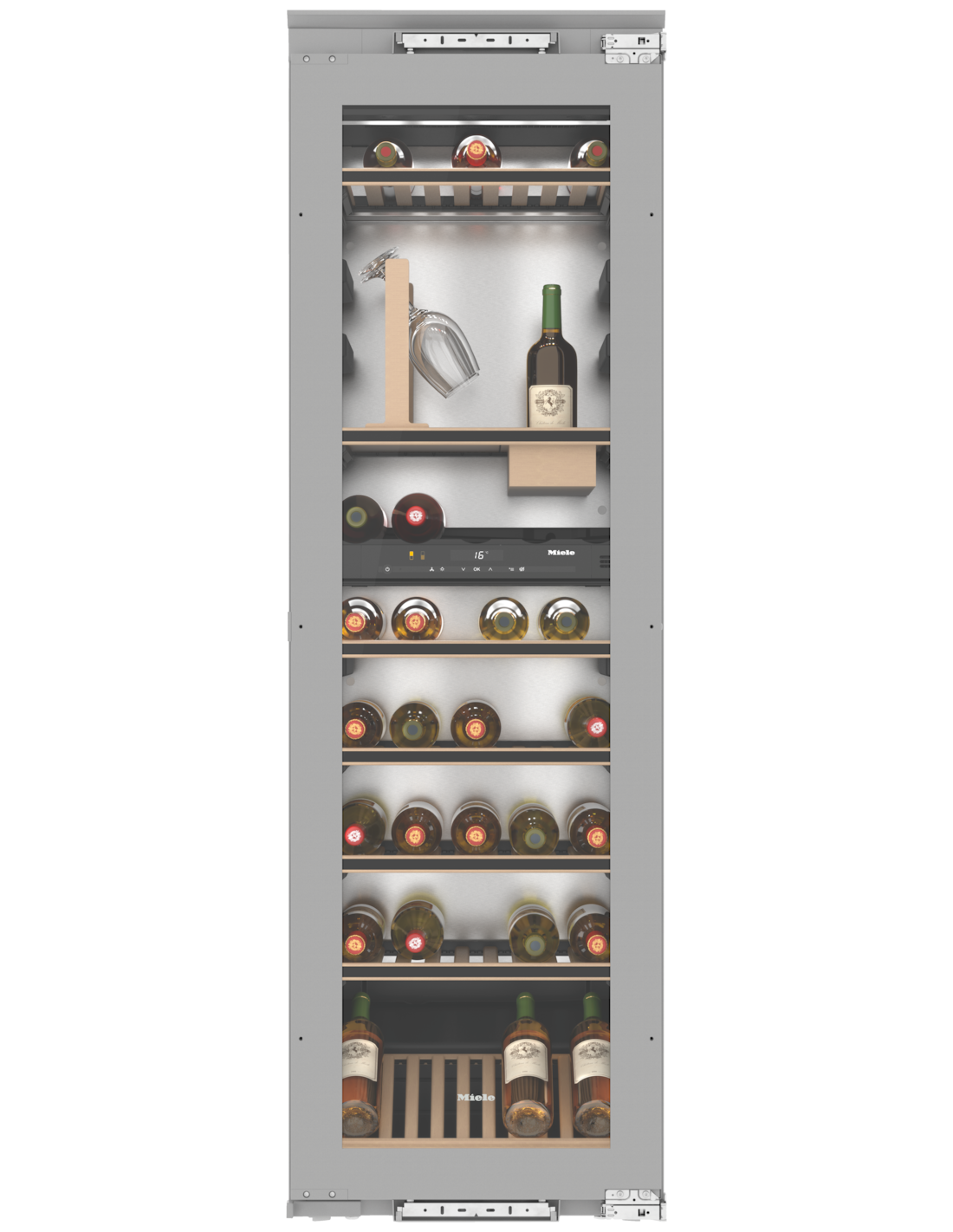 Acondicionador de vino empotrable con FlexiFrame y Set Sumiller para los amantes del vino más exigentes.